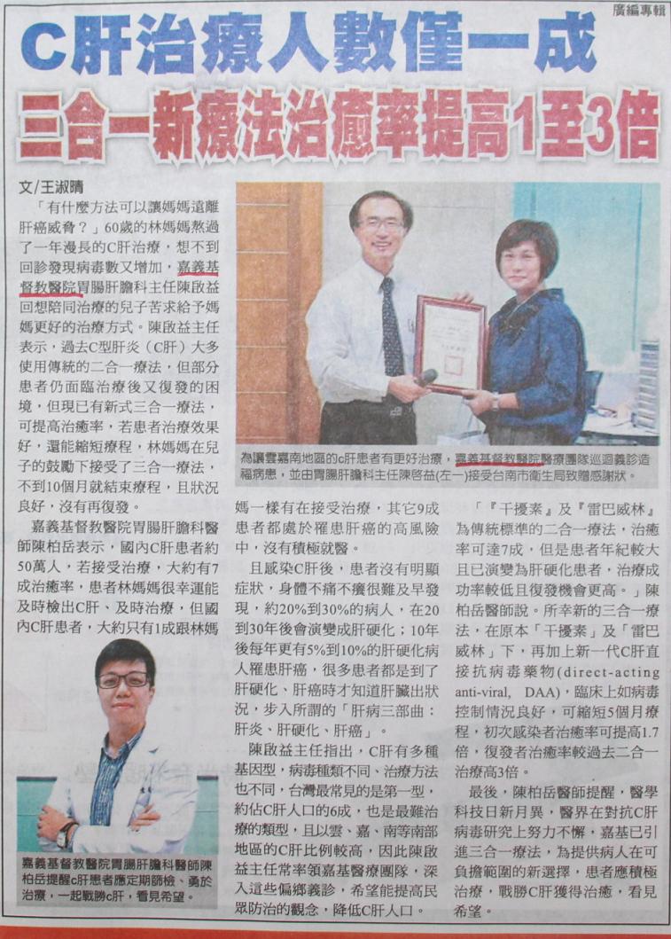 C肝治療人數僅一成 三合一新療法治療率提高1至3倍
