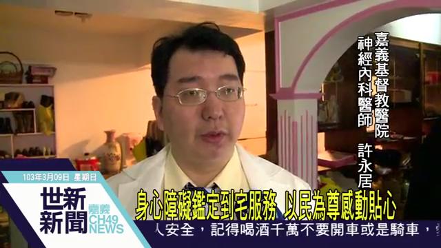 中風導致無法行動的許奶奶,除生活起居需家人全心照料外,想移動奶奶至戶外曬陽光,就是一件浩大的工程,何況是帶到醫院進行身心障礙鑑定,嘉義市政府體恤家屬載送病人奔波之苦,針對癱瘓無法自行下床、24小時使用呼吸器或長期重度昏迷病患,提供到宅鑑定服務,102年已有26位民眾接受到宅服務,吳女士感謝市府這項貼心的服務。